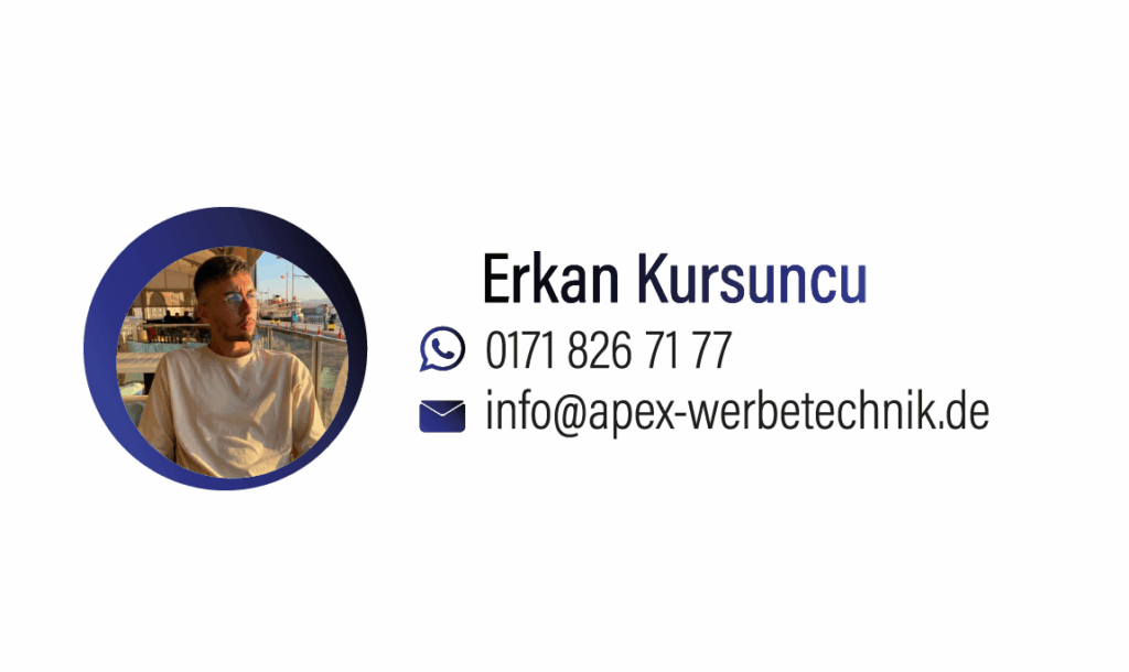 Unsere Leistungen 3D-BuchstabenWerbetafelnGrafikdesignFolienbeschriftung KFZ-BeschriftungDigitaldruckCAD-ZeichnungenLichtwerbung Kontakt Bitte aktiviere JavaScript in deinem Browser, um dieses Formular fertigzustellen.Bitte aktiviere JavaScript in deinem Browser, um dieses Formular fertigzustellen.NameVornameNachnameE-Mail-Adresse E-Mail-Adresse Name Nachricht NachrichtBeschreiben Sie ihr Anliegen, wir antworten so schnell wie möglich.Absenden
